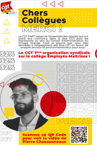 La CGT FAPT remercie celles et ceux ayant voté pour sa liste au Conseil d'administration